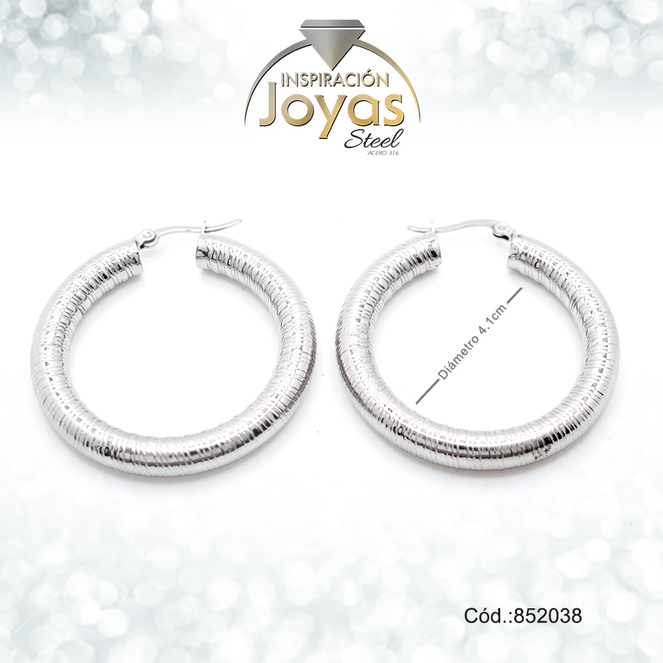 Argolla Acero Plateado Tubular Repuje 3 Lineas D: 4Cm – 852038