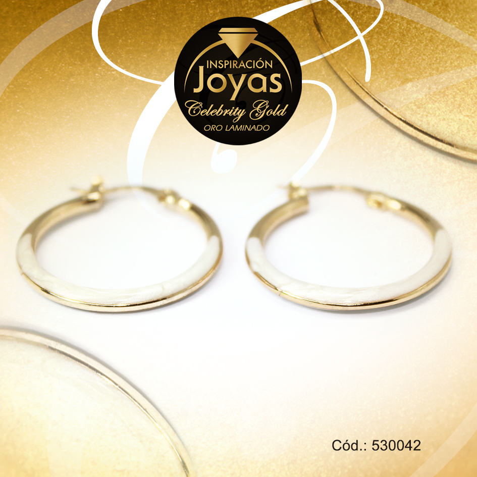 Argolla Celebrity Gold Tono Dorado Aleación Esmalte Trancadero: Pasador V D: 2,5 cm A: 0,3 cm Media Línea Blanco – 530042
