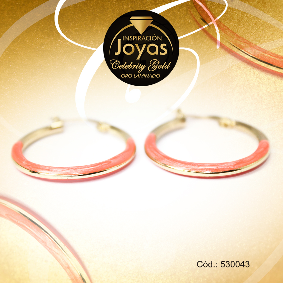 Argolla Celebrity Gold Tono Dorado Aleación Esmalte Trancadero: Pasador V D: 2,5 cm A: 0,3 cm Media Línea Rosado – 530043