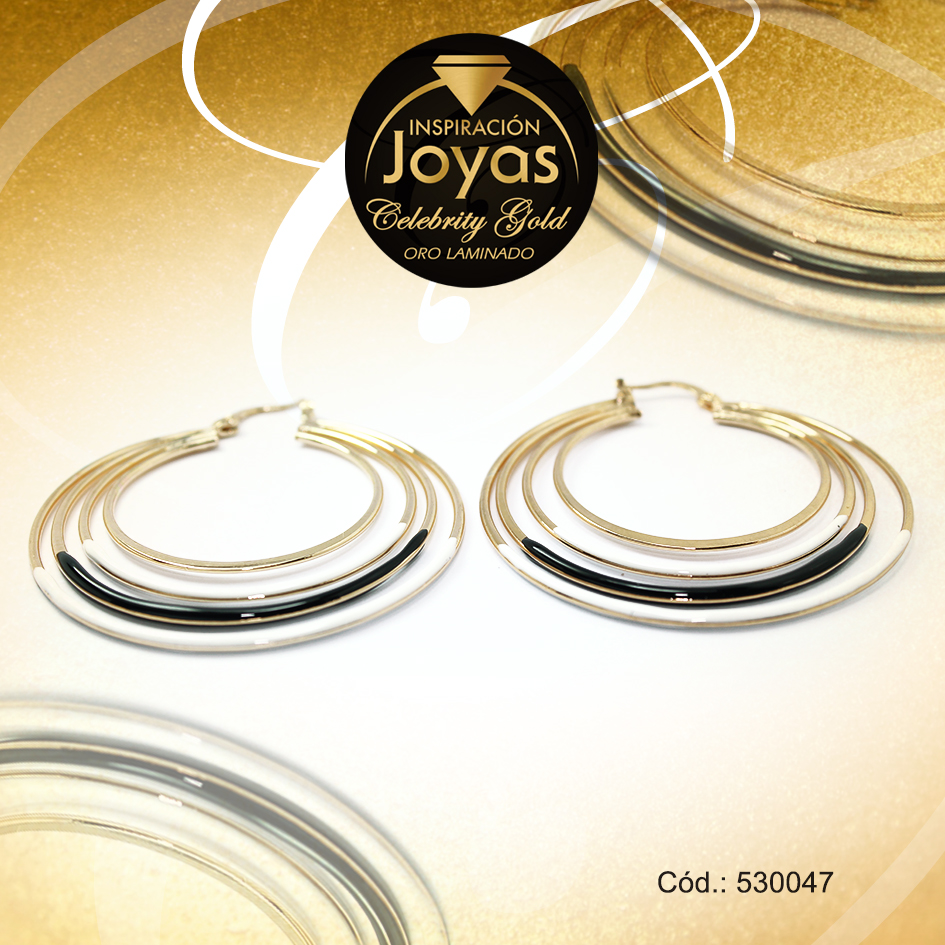 Argolla Celebrity Gold Tono Dorado Aleación Esmalte Trancadero: Pasador V D: 5,1 cm A: 0,1 cm Triple Blanco y Negro – 530047