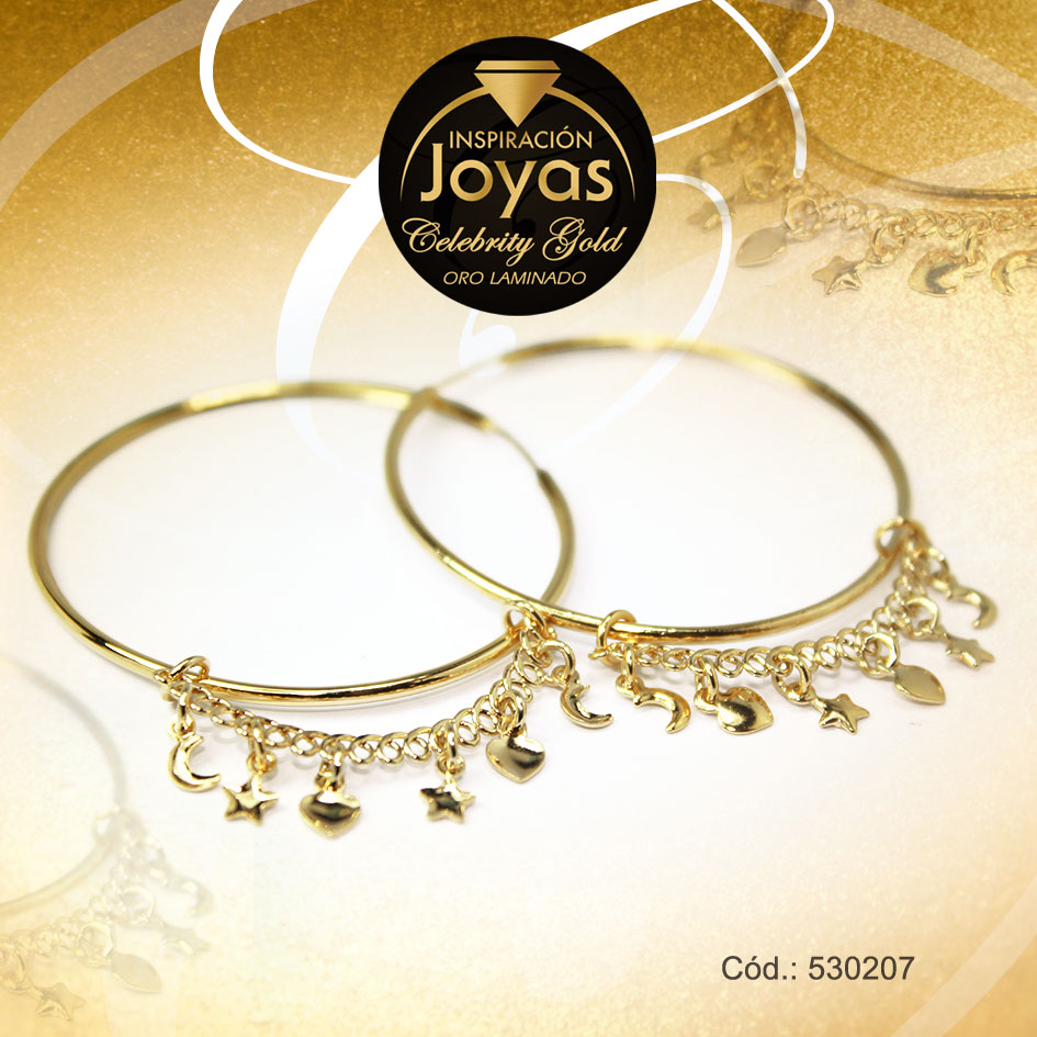 Argolla Celebrity Gold Tono Dorado Colgante Trancadero: Insercion D: 3,7 cm A: 3,7 cm Luna, Corazón, Estrella – 530207
