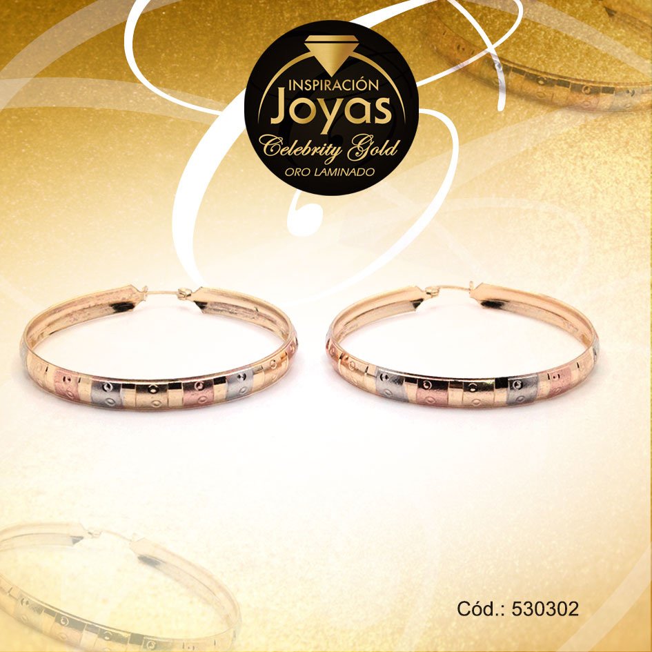 Argolla Celebrity Gold Variado 3 Tonos Cuadros – 530302
