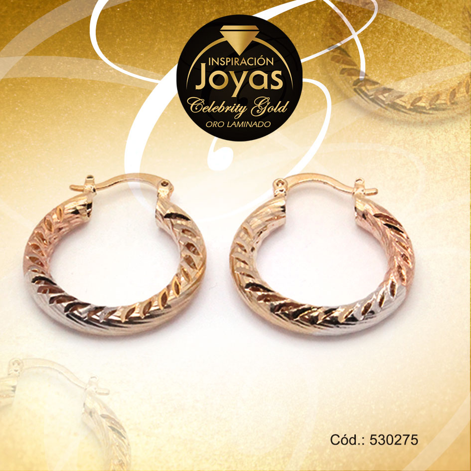 Argolla Celebrity Gold Variado 3 Tonos Repuje de Líneas – 530275