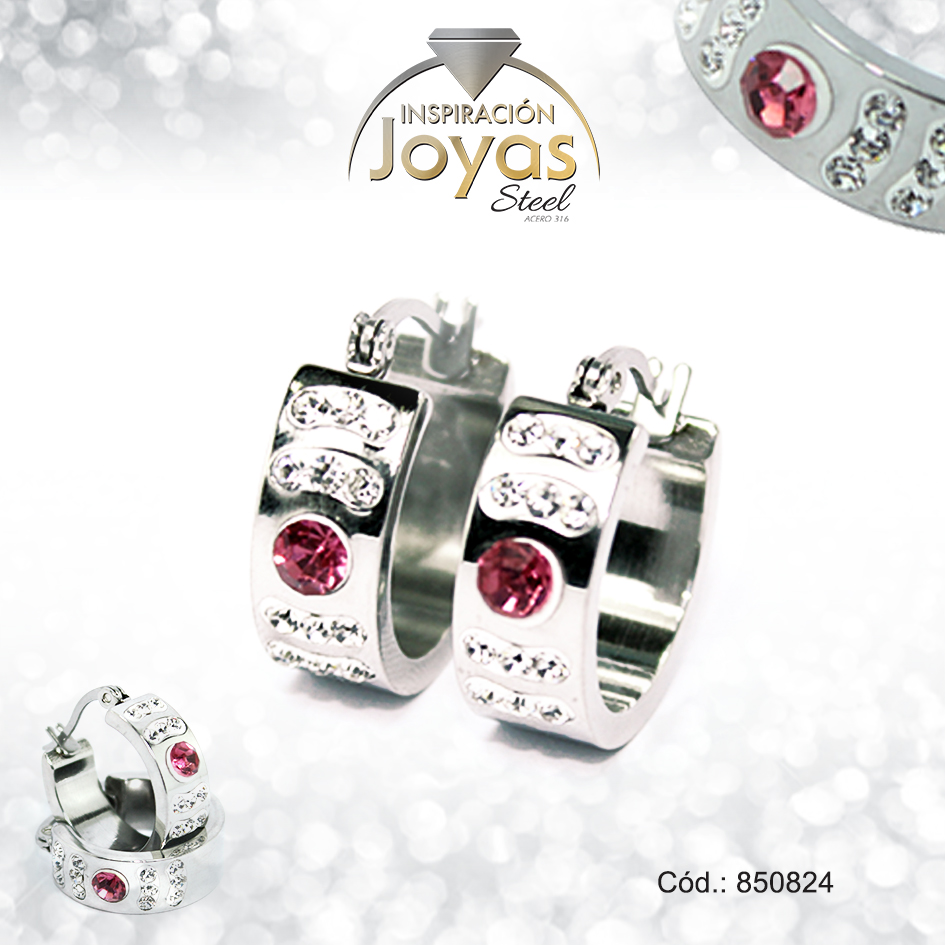 Argolla de Acero Aleación Circón Plateado Círculo Rosado – 850824