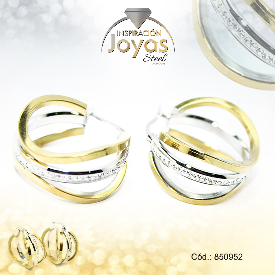 Argolla de Acero Aleación Micro Circón 2 Tonos Círculo – 850952