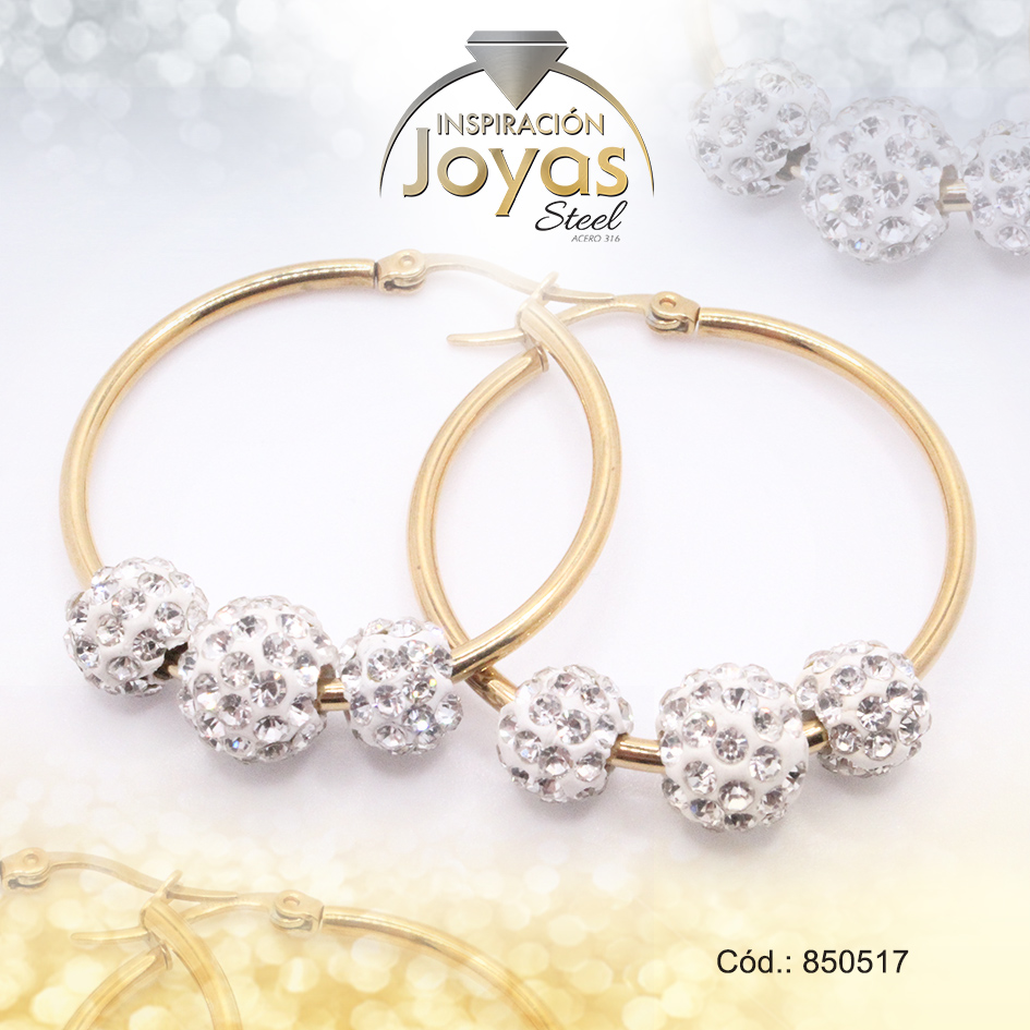 Argolla de Acero Aleación Micro Circón Dorado Círculo – 850517