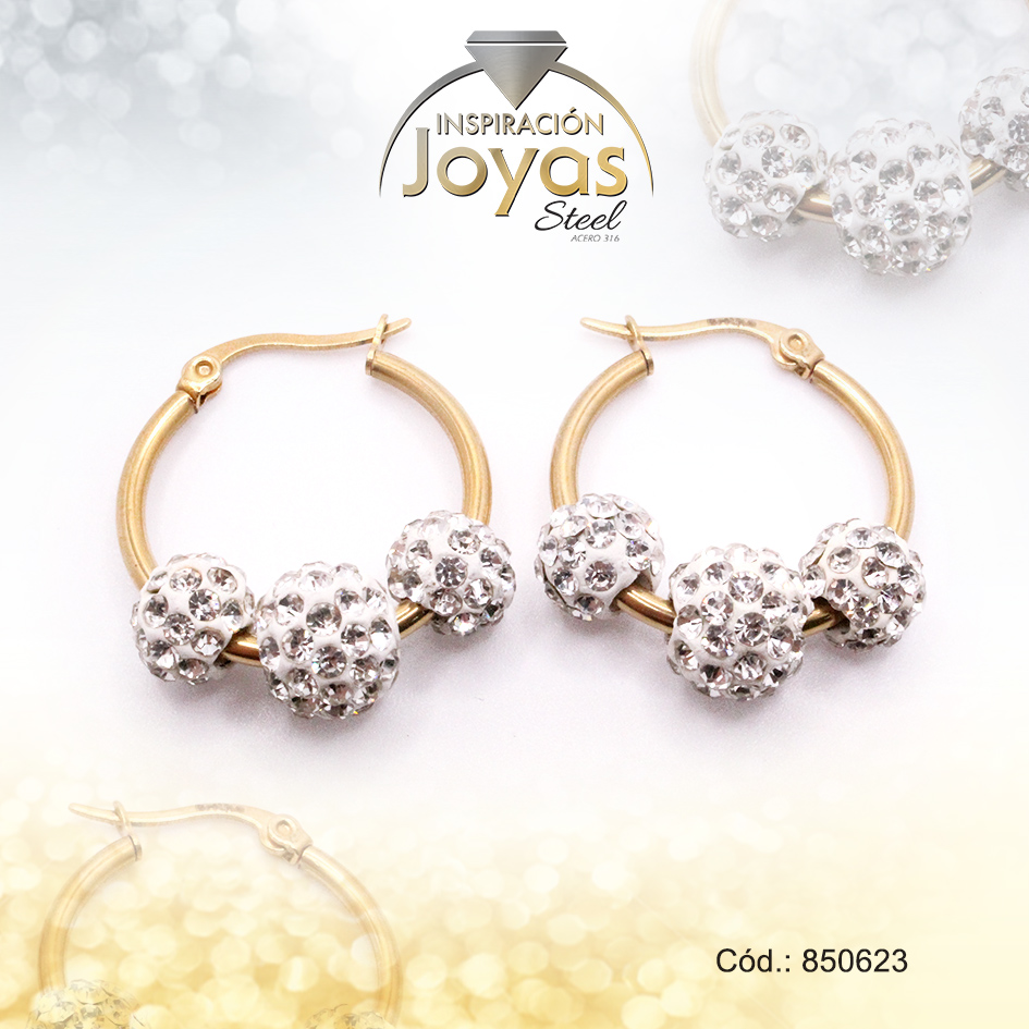 Argolla de Acero Aleación Micro Circón Dorado Círculo – 850623