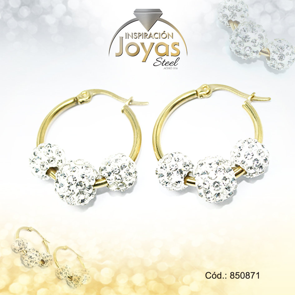 Argolla de Acero Aleación Micro Circón Dorado Círculo – 850871
