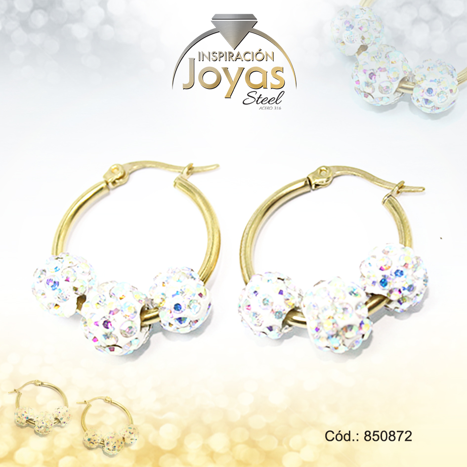 Argolla de Acero Aleación Micro Circón Dorado Círculo – 850872