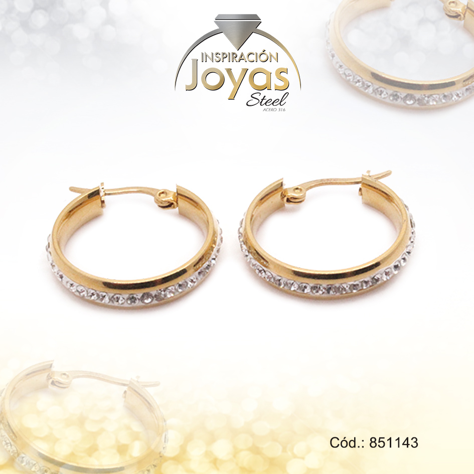 Argolla de Acero Aleación Micro Circón Dorado Círculo – 851143
