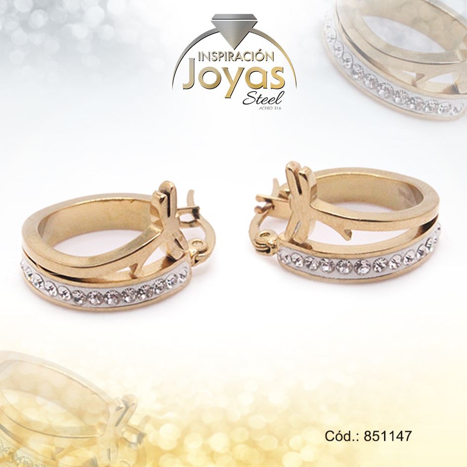 Argolla de Acero Aleación Micro Circón Dorado Círculo – 851147