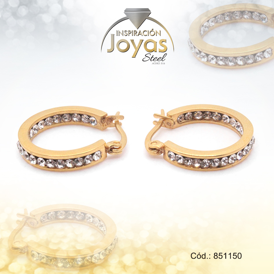 Argolla de Acero Aleación Micro Circón Dorado Círculo – 851150