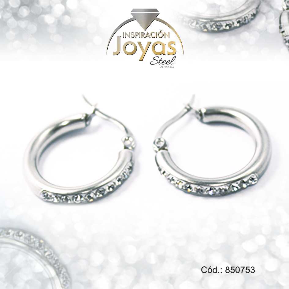 Argolla de Acero Aleación Micro Circón Plateado Círculo – 850753
