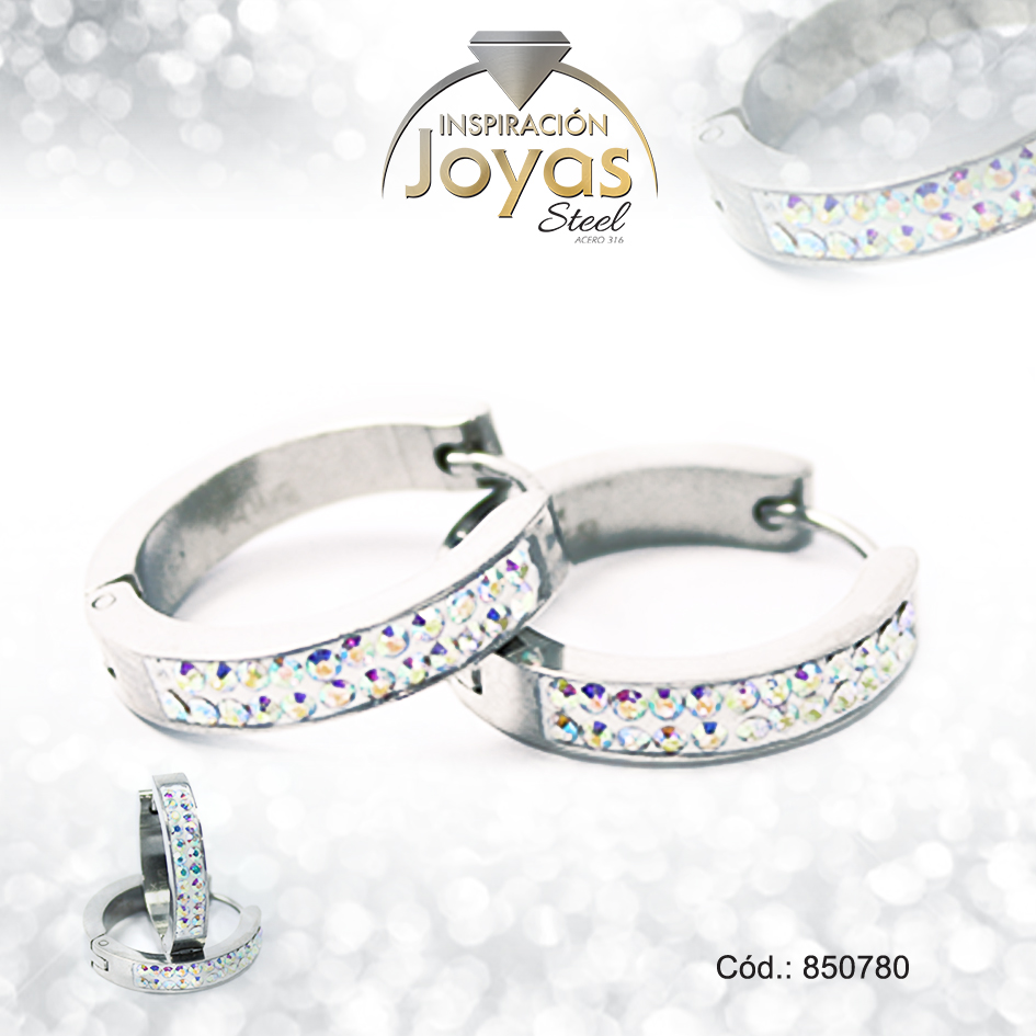 Argolla de Acero Aleación Micro Circón Plateado Círculo – 850780