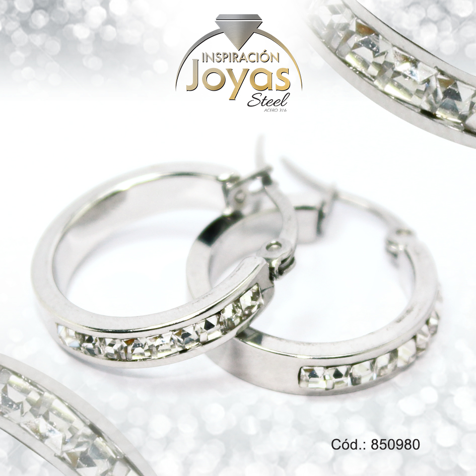 Argolla de Acero Aleación Micro Circón Plateado Círculo – 850980