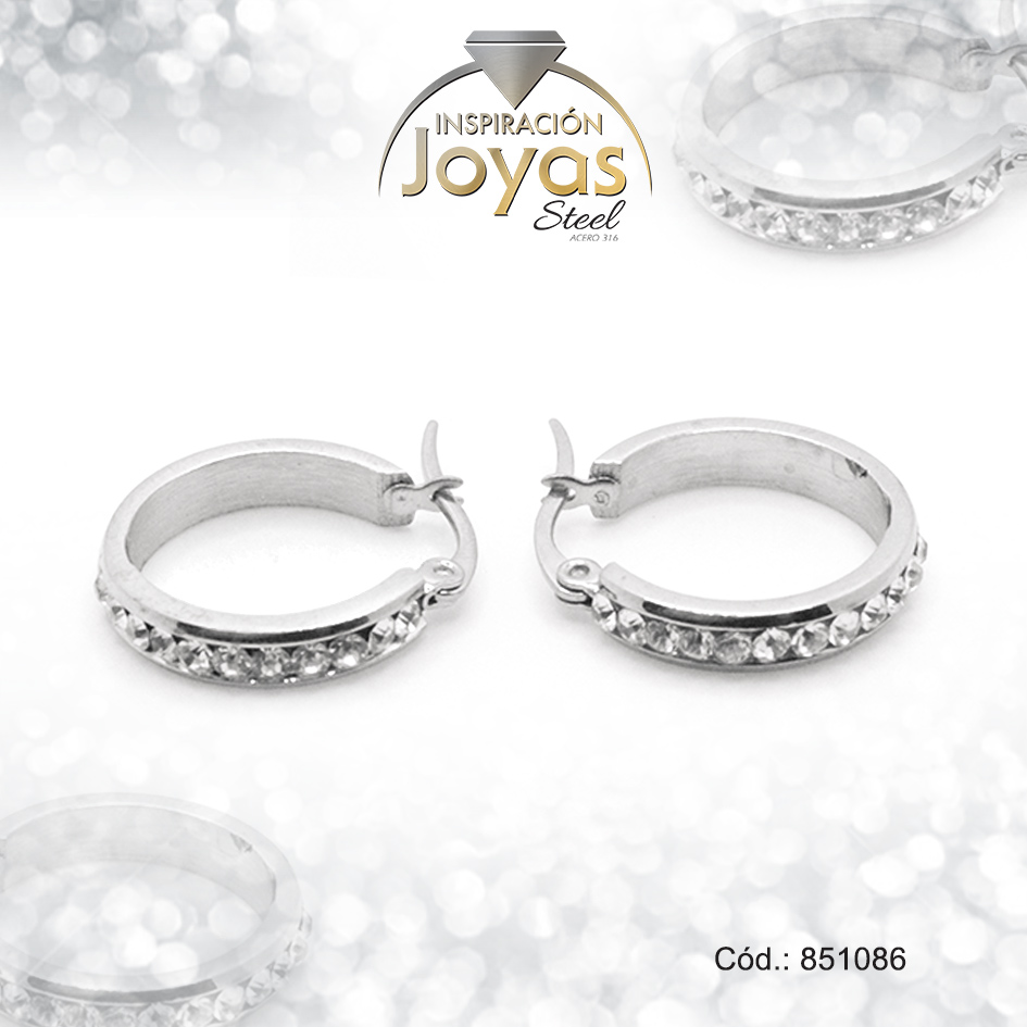 Argolla de Acero Aleación Micro Circón Plateado Círculo – 851086