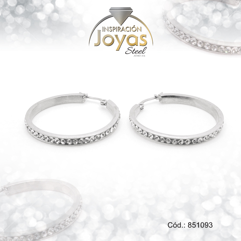 Argolla de Acero Aleación Micro Circón Plateado Círculo – 851093