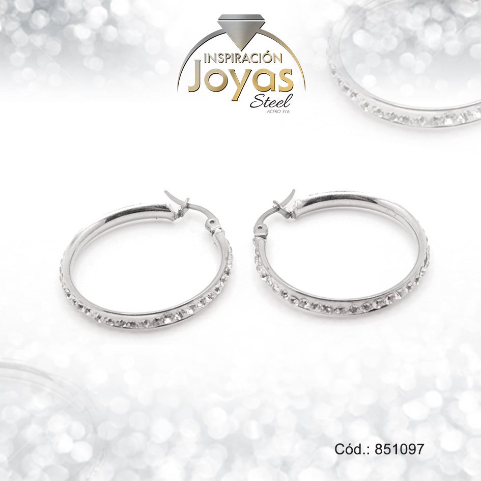 Argolla de Acero Aleación Micro Circón Plateado Círculo – 851097