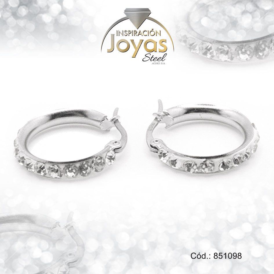 Argolla de Acero Aleación Micro Circón Plateado Círculo – 851098