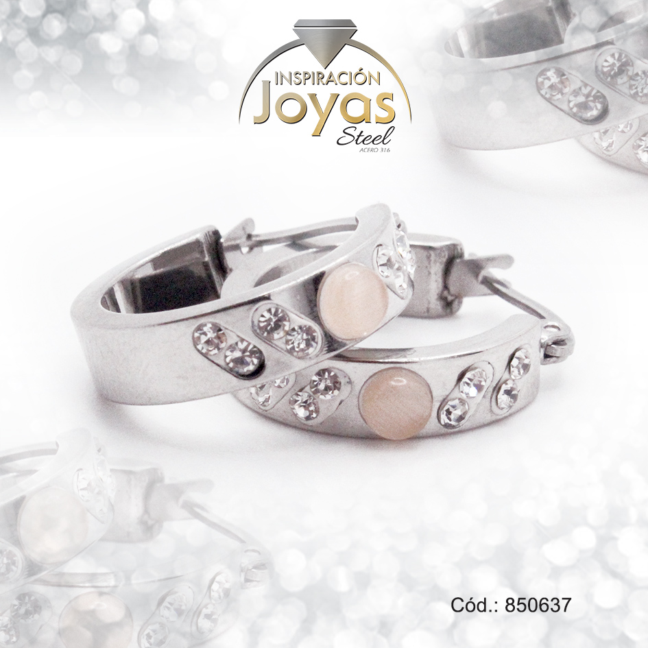Argolla de Acero Aleación Ojo De Gato Plateado Círculo Beige – 850637