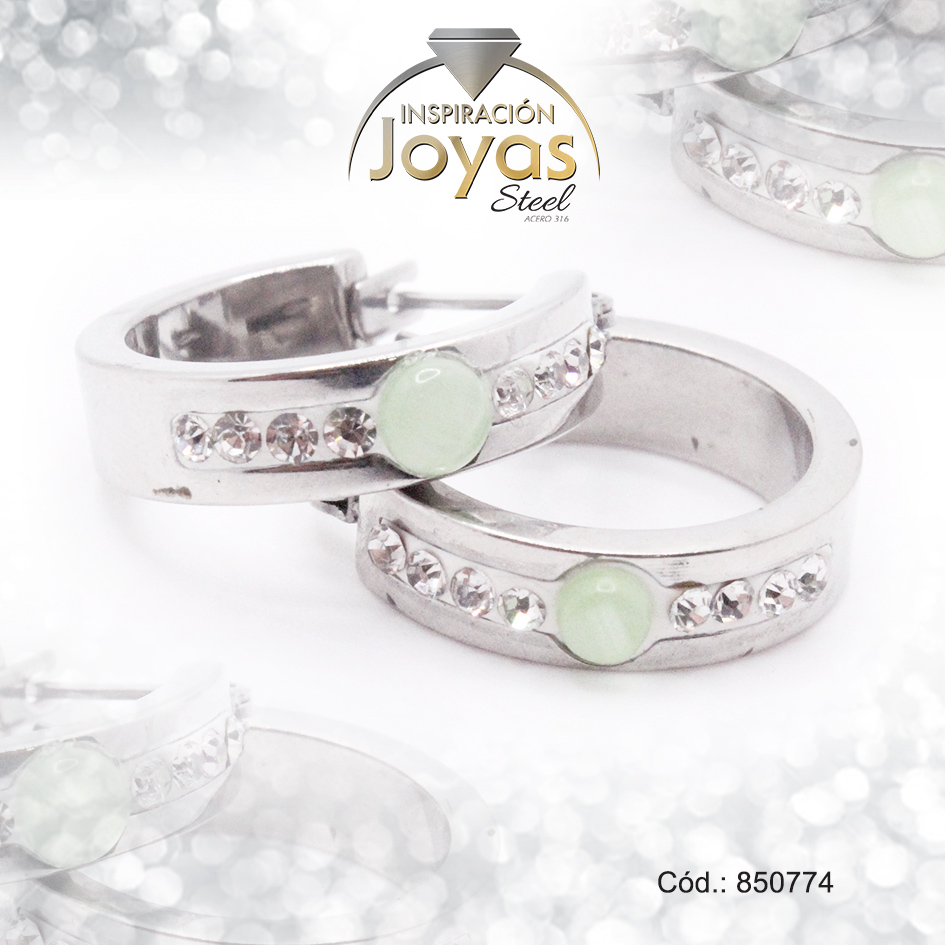 Argolla de Acero Aleación Ojo De Gato Plateado Círculo Verde – 850774
