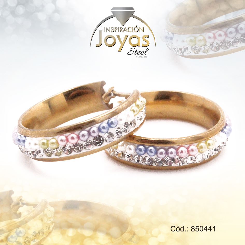 Argolla de Acero Aleación Sintetico Dorado Círculo Multi Color – 850441