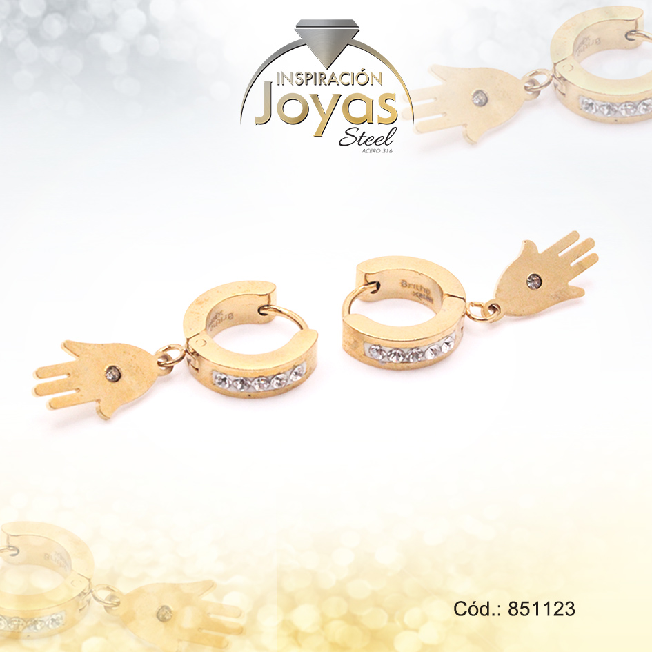 Argolla de Acero Colgante Circón Dorado Mano De Fatima – 851123