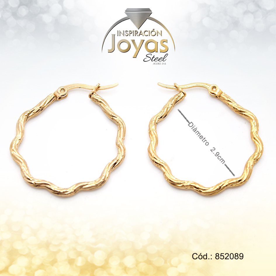 Argolla De Acero Dorada Forma De Onda Con Entorche – 852089