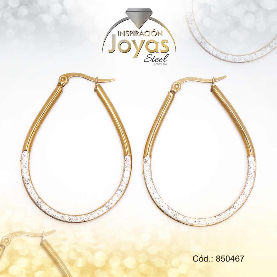 Argolla de Acero Forma Geométrica con Micro Circón Dorado Óvalo – 850467