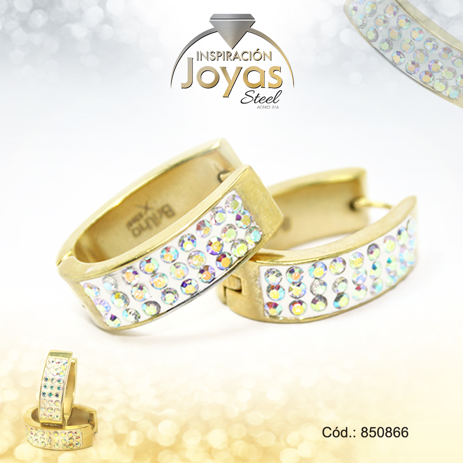 Argolla de Acero Forma Geométrica con Micro Circón Dorado Óvalo – 850866