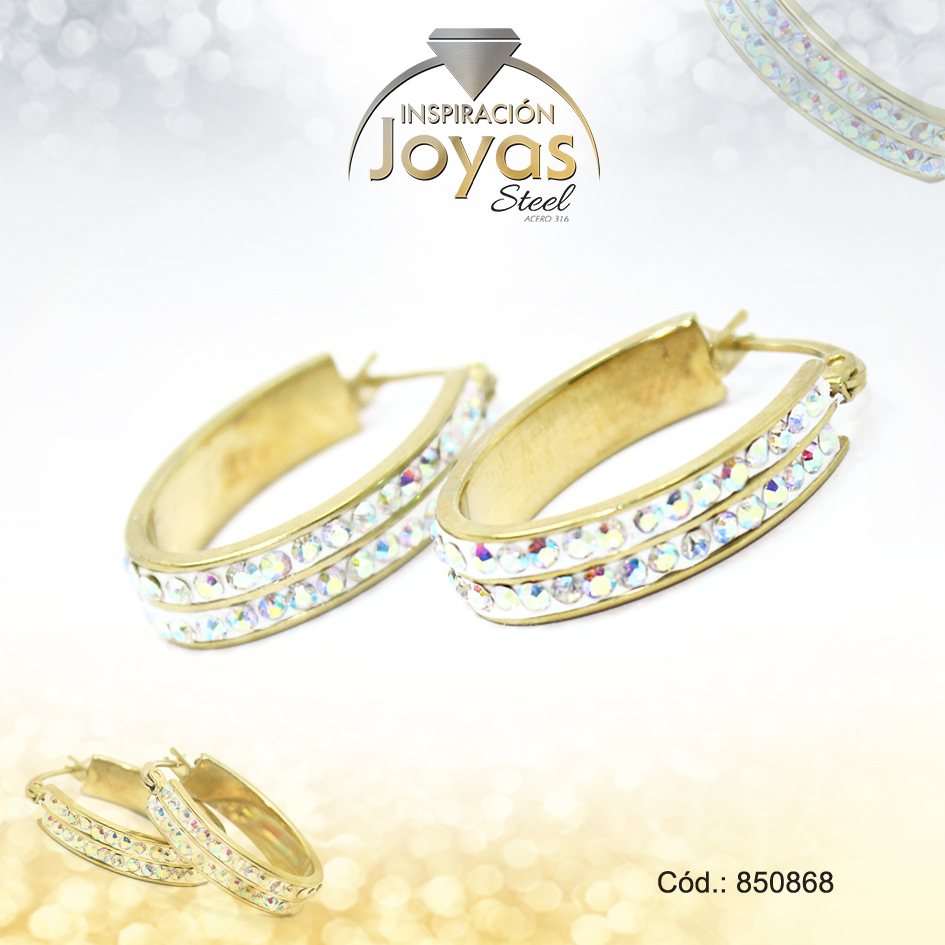 Argolla de Acero Forma Geométrica con Micro Circón Dorado Óvalo – 850868