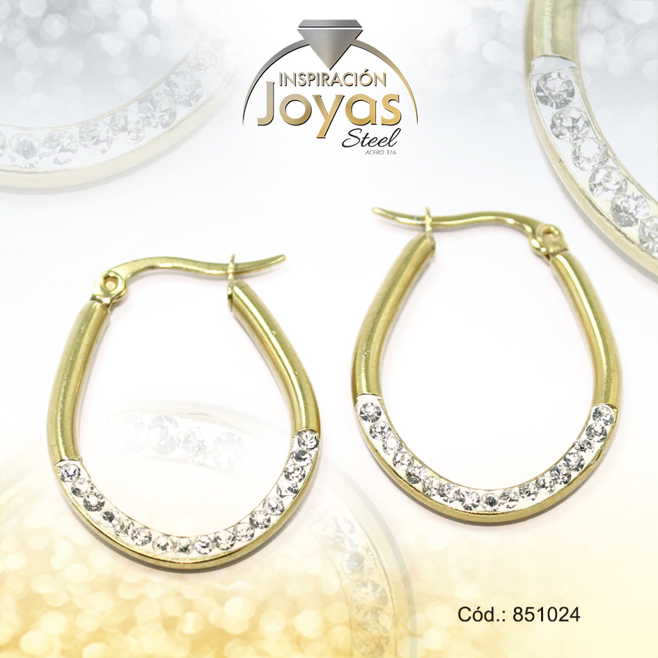 Argolla de Acero Forma Geométrica con Micro Circón Dorado Óvalo – 851024