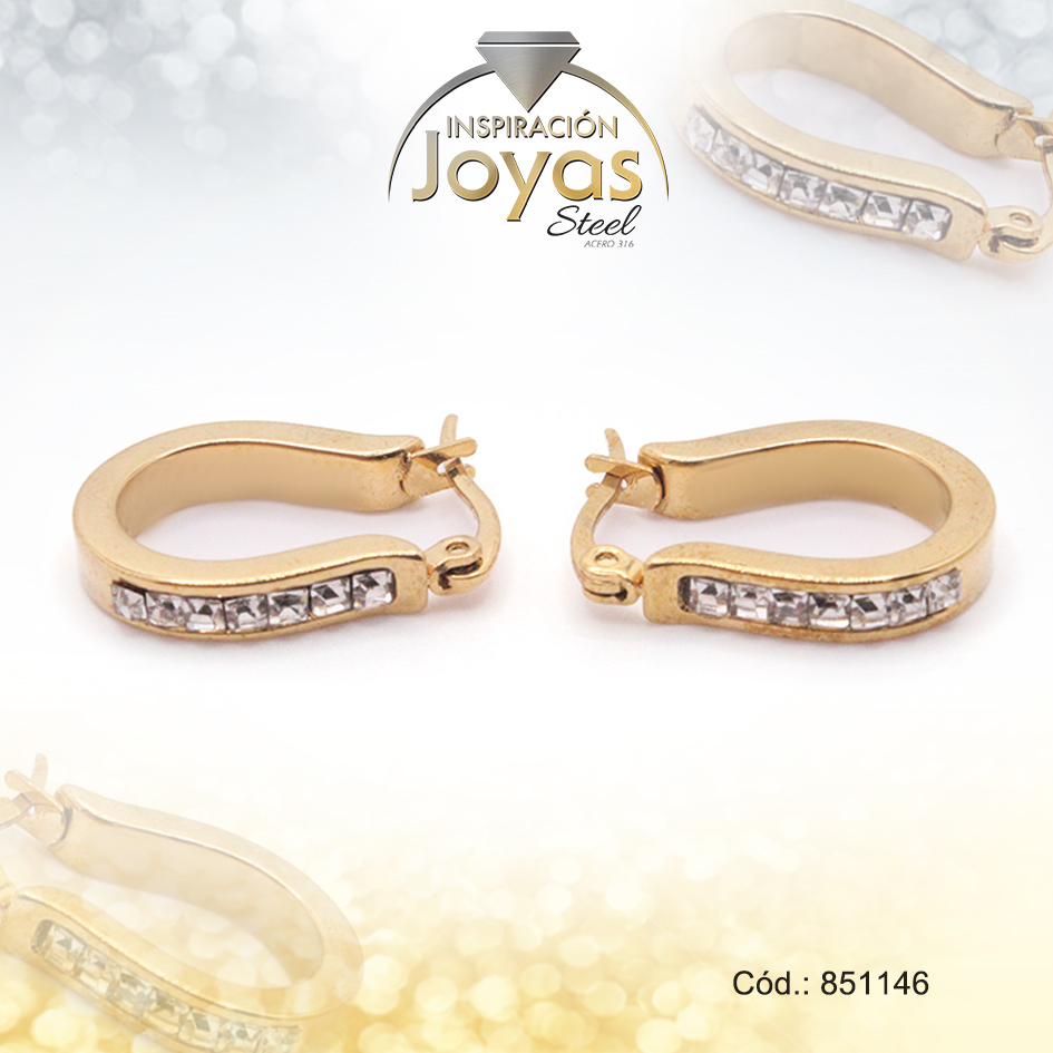 Argolla de Acero Forma Geométrica con Micro Circón Dorado Óvalo – 851146