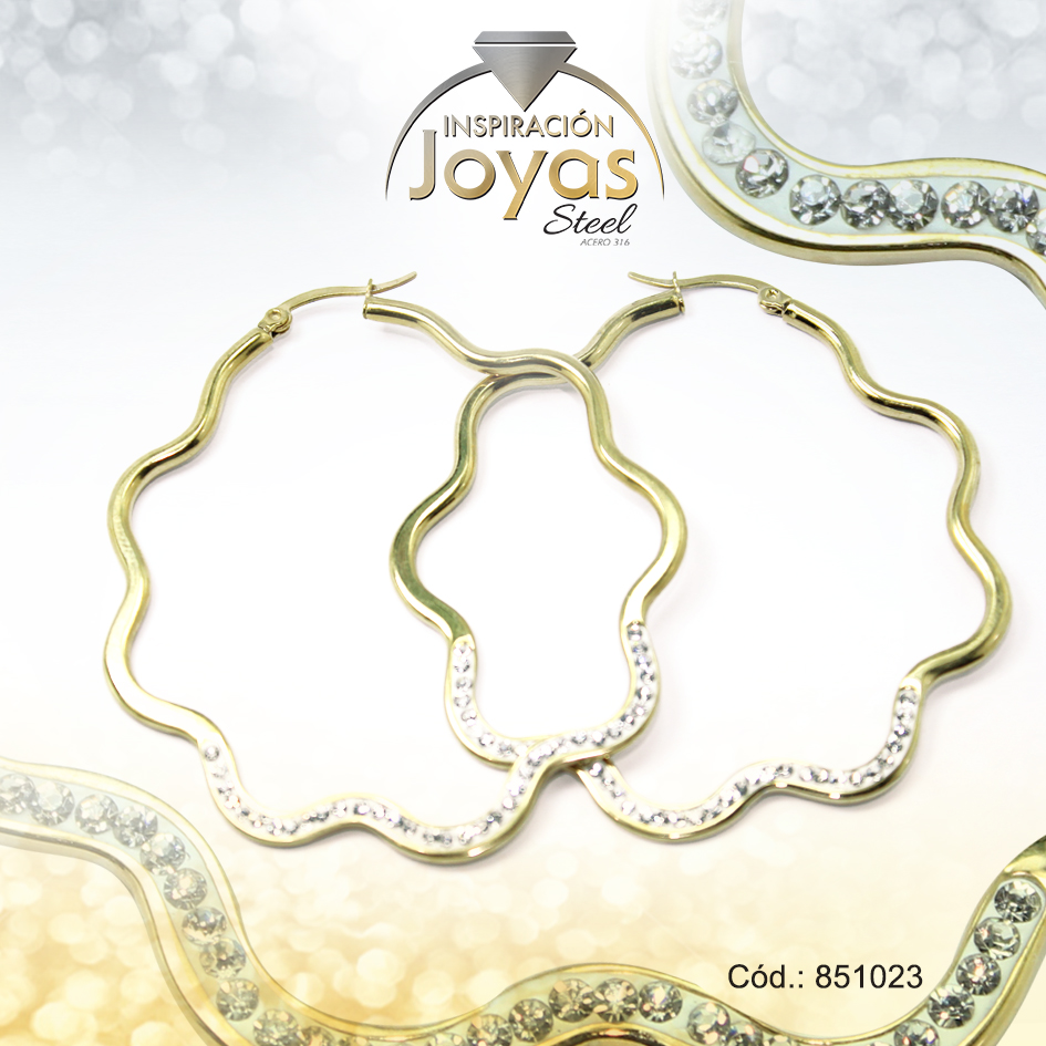 Argolla de Acero Micro Circón Dorado Trébol – 851023