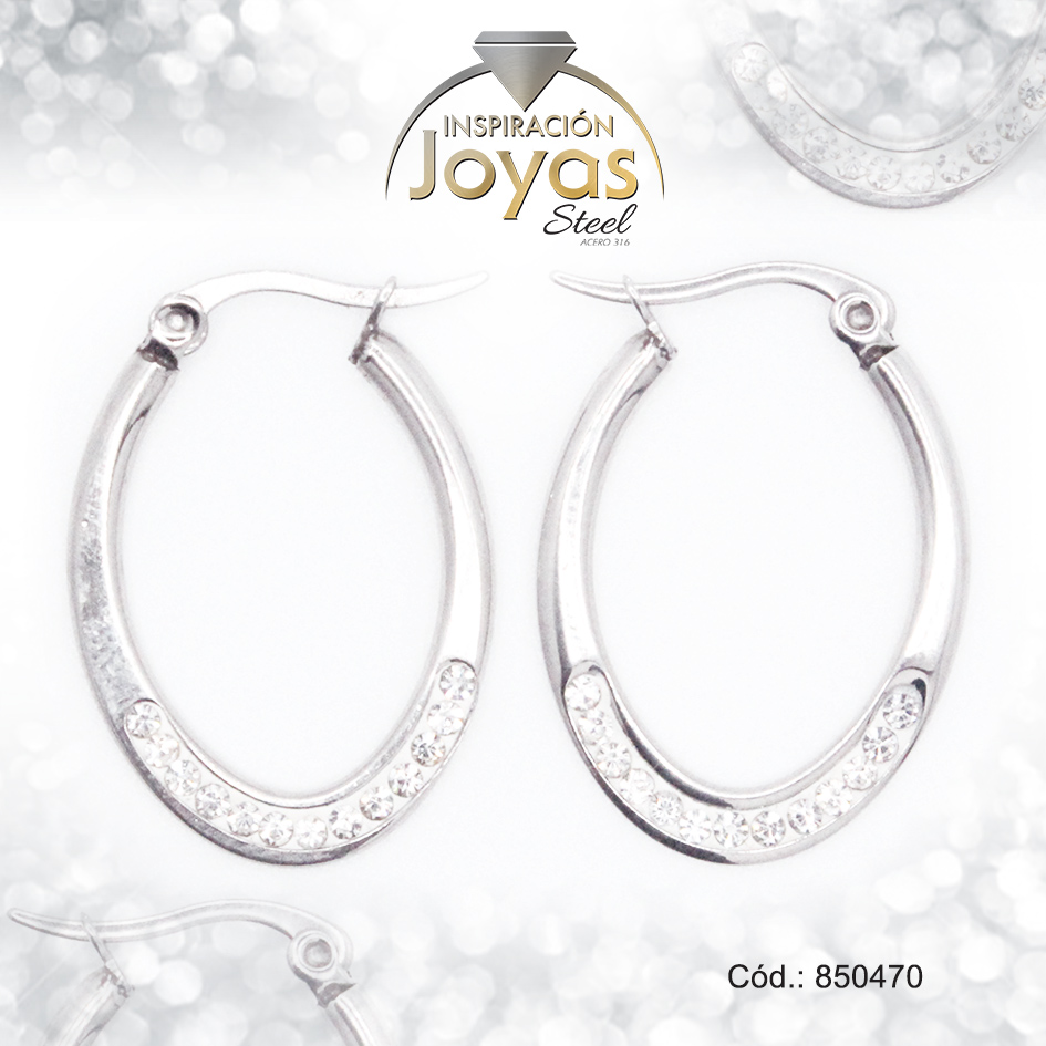 Argolla de Acero Forma Geométrica con Micro Circón Plateado Óvalo – 850470