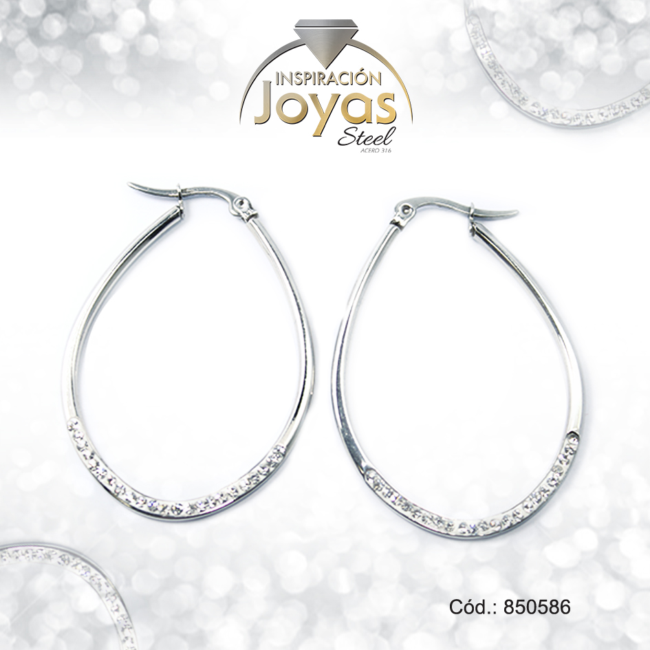 Argolla de Acero Forma Geométrica con Micro Circón Plateado Óvalo – 850586