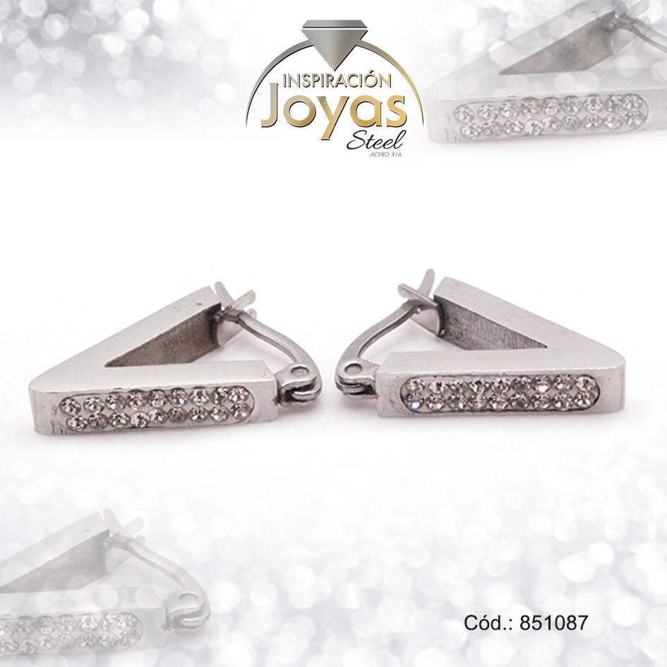 Argolla de Acero Forma Geométrica con Micro Circón Plateado Triángulo – 851087