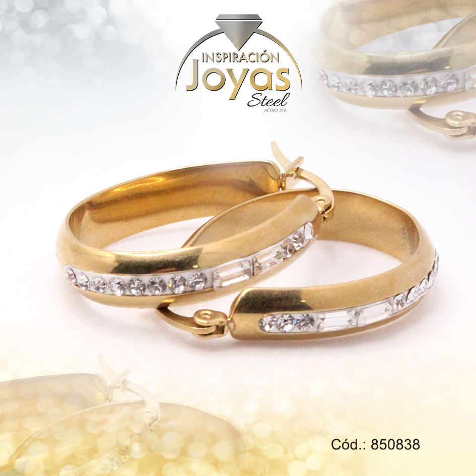 Argolla de Acero Forma Geométrica con Piedra Dorado Óvalo Blanco – 850838