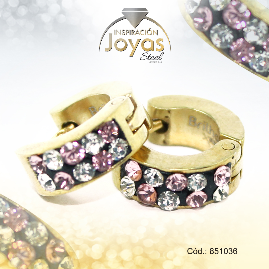 Argolla de Acero Huggies con Circón Dorado Círculo – 851036