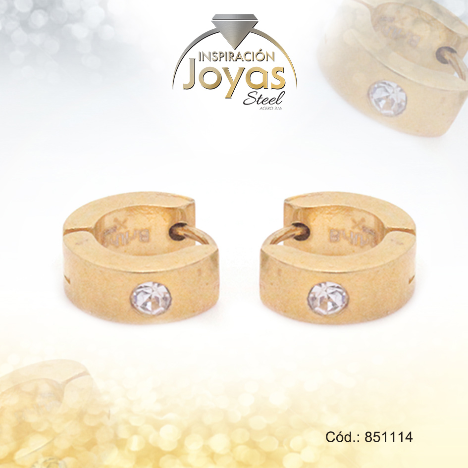 Argolla de Acero Huggies con Circón Dorado Círculo – 851114