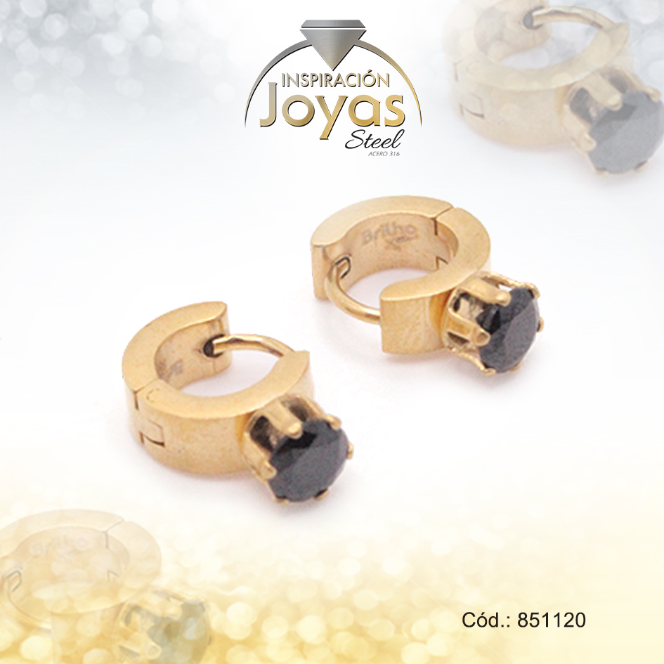 Argolla de Acero Huggies con Circón Dorado Círculo Negro – 851120