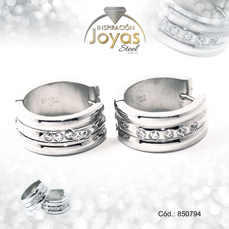 Argolla de Acero Huggies con Circón Plateado Círculo – 850794