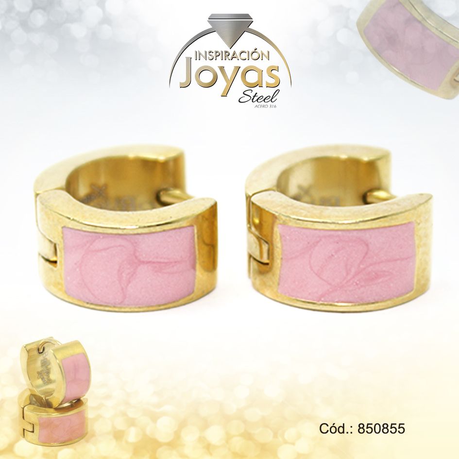 Argolla de Acero Huggies con Piedra Dorado Círculo Rosado – 850855
