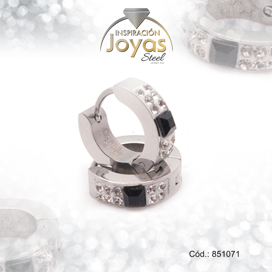 Argolla de Acero Huggies con Piedra Plateado Círculo Negro – 851071