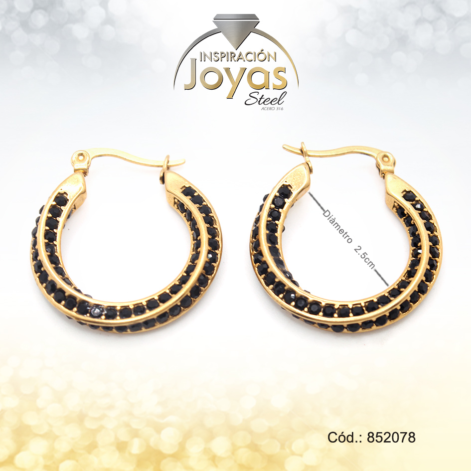 Argollas De Acero Dorado Con Circones Negros Entorchada – 852078