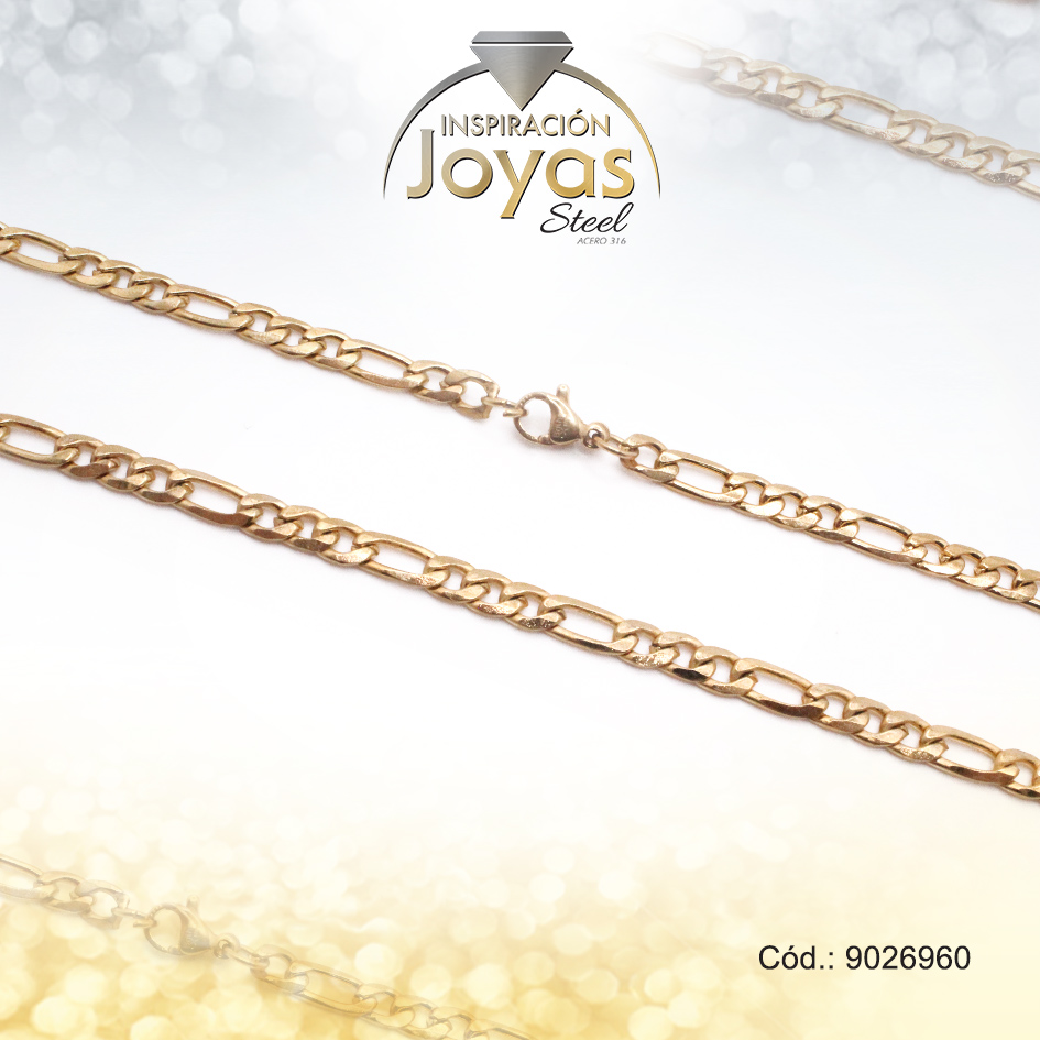 Cadena de Acero Caballero Dorado Tejido Figaro Medida 60 cm – 9026960