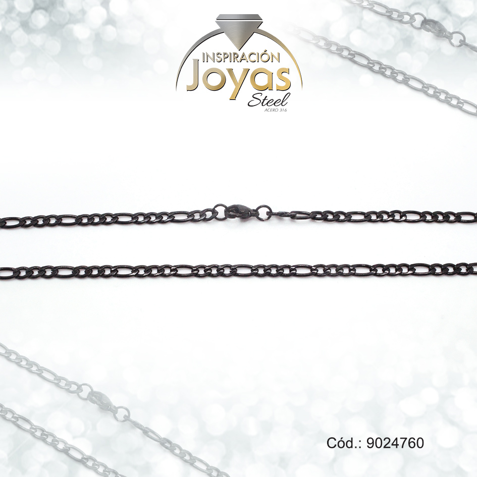 Cadena de Acero Caballero Negro Tejido Figaro Medida 60 cm – 9024760