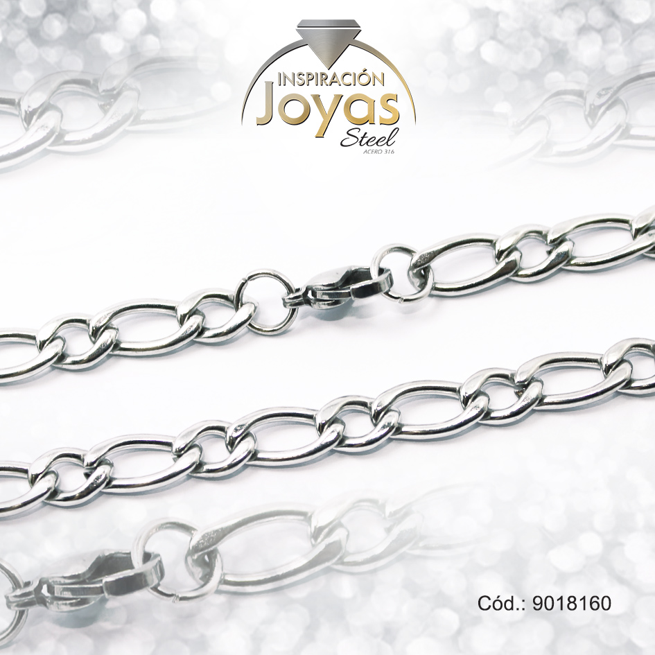 Cadena de Acero Caballero Plateado Tejido Barbado Alterno 1 x 1 Medida 60 cm – 9018160