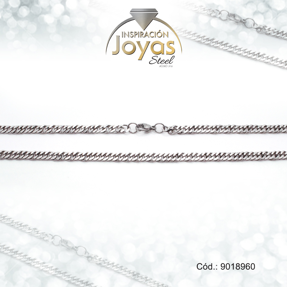 Cadena de Acero Caballero Plateado Tejido Eslabón Cubano Medida 60 cm – 9018960