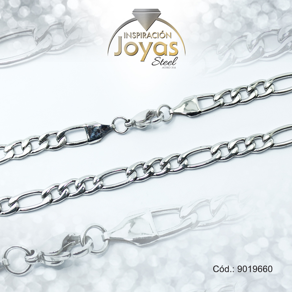 Cadena de Acero Caballero Plateado Tejido Figaro Medida 60 cm – 9019660